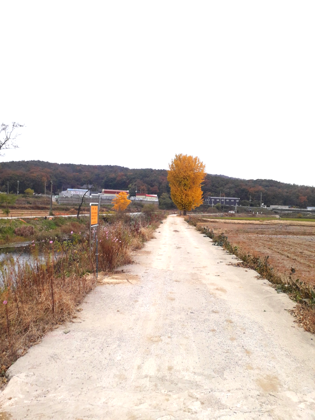 건달산으로 가는 도중에 있는 기천1,2리 방향으로 향하는 길 입니다