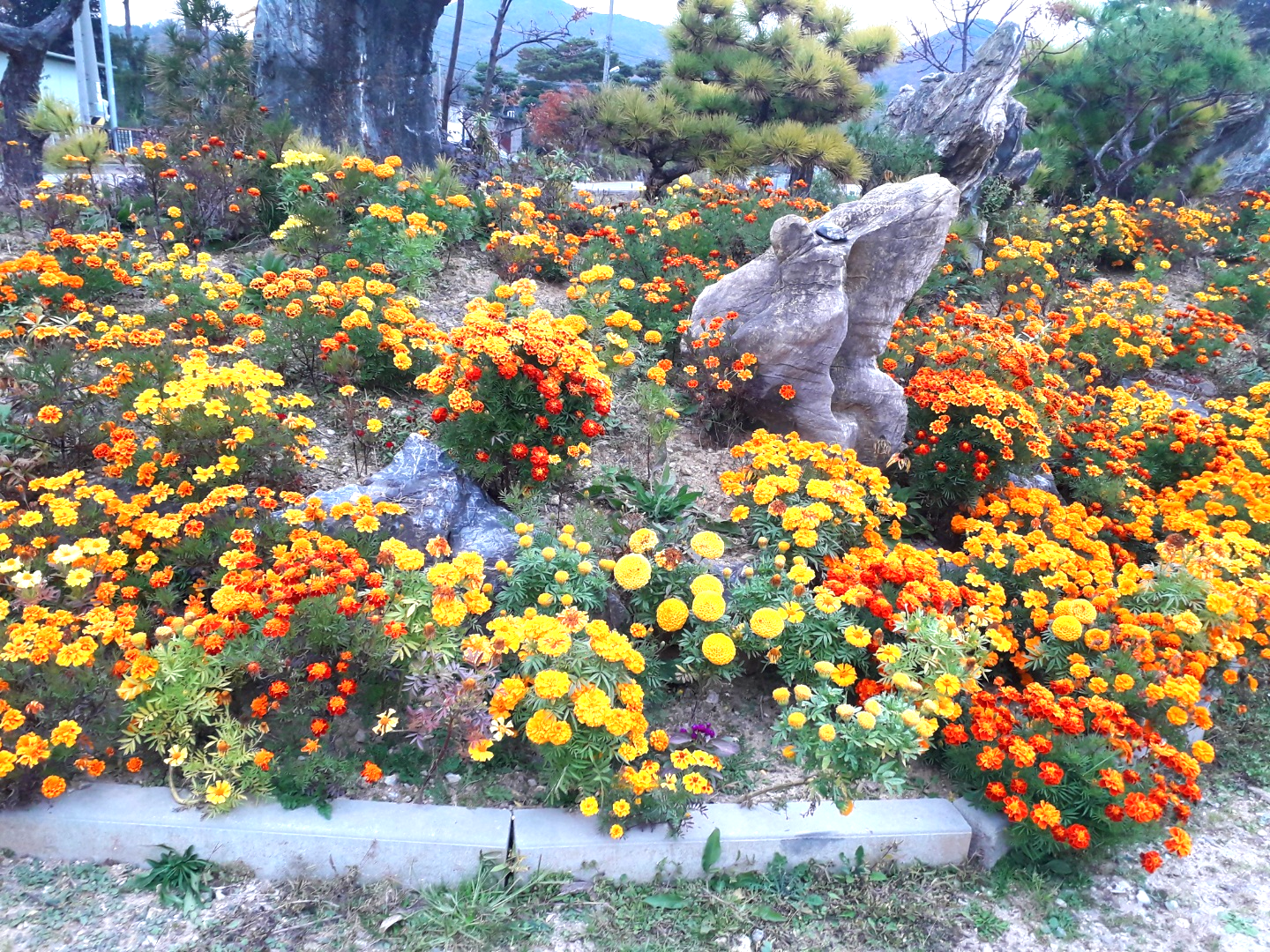 꽃이 만개하여 빨강 노라 주황 보라 등눈을 현혹 하는 장소가 있어서